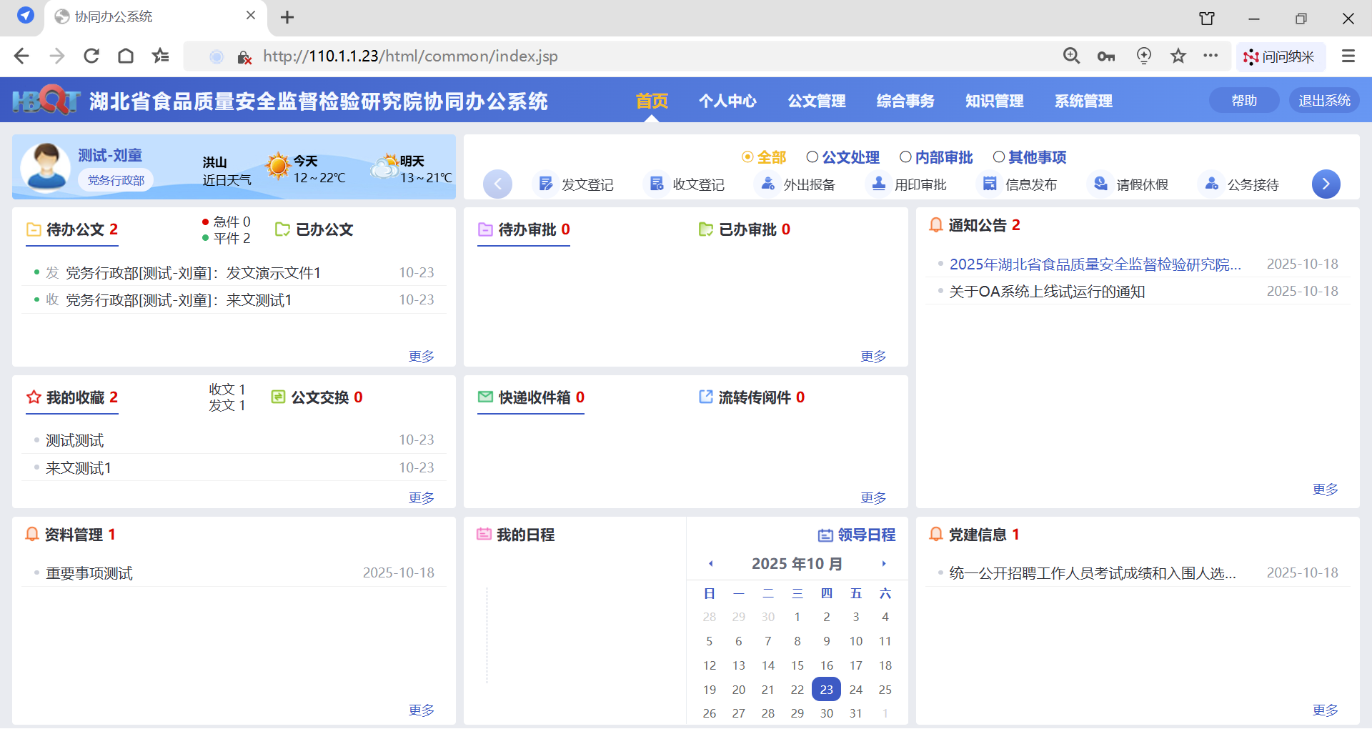 成功上线湖北省食品质量安全监督检验研究院协同办公系统...